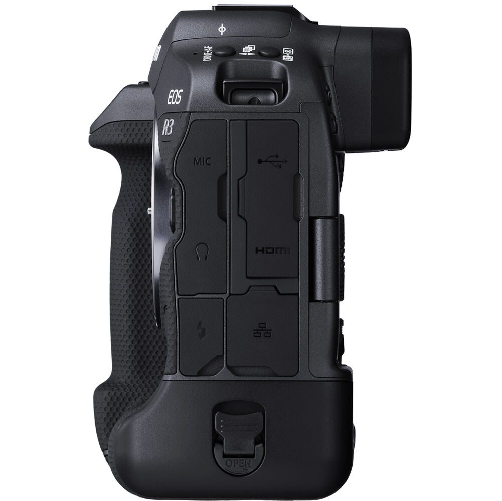 A R3 também é a primeira câmera EOS da série R a apresentar uma alça vertical integrada, tornando-a uma escolha ergonômica para longos tempos de disparo e para alternar perfeitamente entre as orientações de disparo horizontal e vertical. O design do corpo robusto também incorpora um EVF OLED de 5,76 m de alta resolução e um LCD de tela sensível ao toque de ângulo variável de 3,2″, juntamente com dois slots de cartão de memória, conectividade sem fio e com fio e um design de sapata multifuncional atualizado para compatibilidade expandida de acessórios .