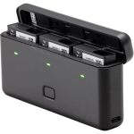 O Kit de Aventura inclui uma caixa multifuncional que armazena três baterias e realiza carga rápida simultaneamente. Essa caixa pode ser alimentada por uma fonte externa via USB Type-C e funciona como um power bank para outros dispositivos, além de guardar dois cartões microSD com segurança.