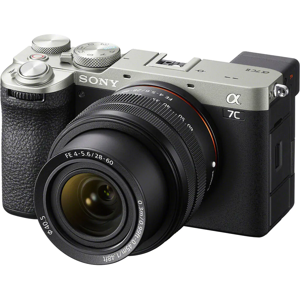 A Sony a7C II prateada é a evolução híbrida aprimorada da sua predecessora de primeira geração, mantendo o perfil elegante e a combinação de sensor full-frame, agora com melhorias na resolução, autofoco, estabilização de imagem no corpo e capacidades de vídeo, tudo em um formato compacto para uso diário durante todo o dia.