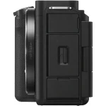 A câmera ZV-E1 possui uma montagem de lente Sony E, que suporta todas as lentes de montagem E, incluindo lentes FE full-frame. A tela LCD com tela sensível ao toque intuitiva possui uma abertura lateral e ângulo variável, permitindo a captura em ângulos altos, baixos e até mesmo em posição frontal para vlogs e autogravações. A câmera também possui uma lâmpada indicadora que mostra quando está gravando, além de ser resistente à poeira e umidade para operação confiável em condições adversas. A câmera utiliza uma bateria recarregável de íon de lítio Z de alta capacidade, que proporciona aproximadamente 570 fotos ou 120 minutos de gravação de vídeo por carga.