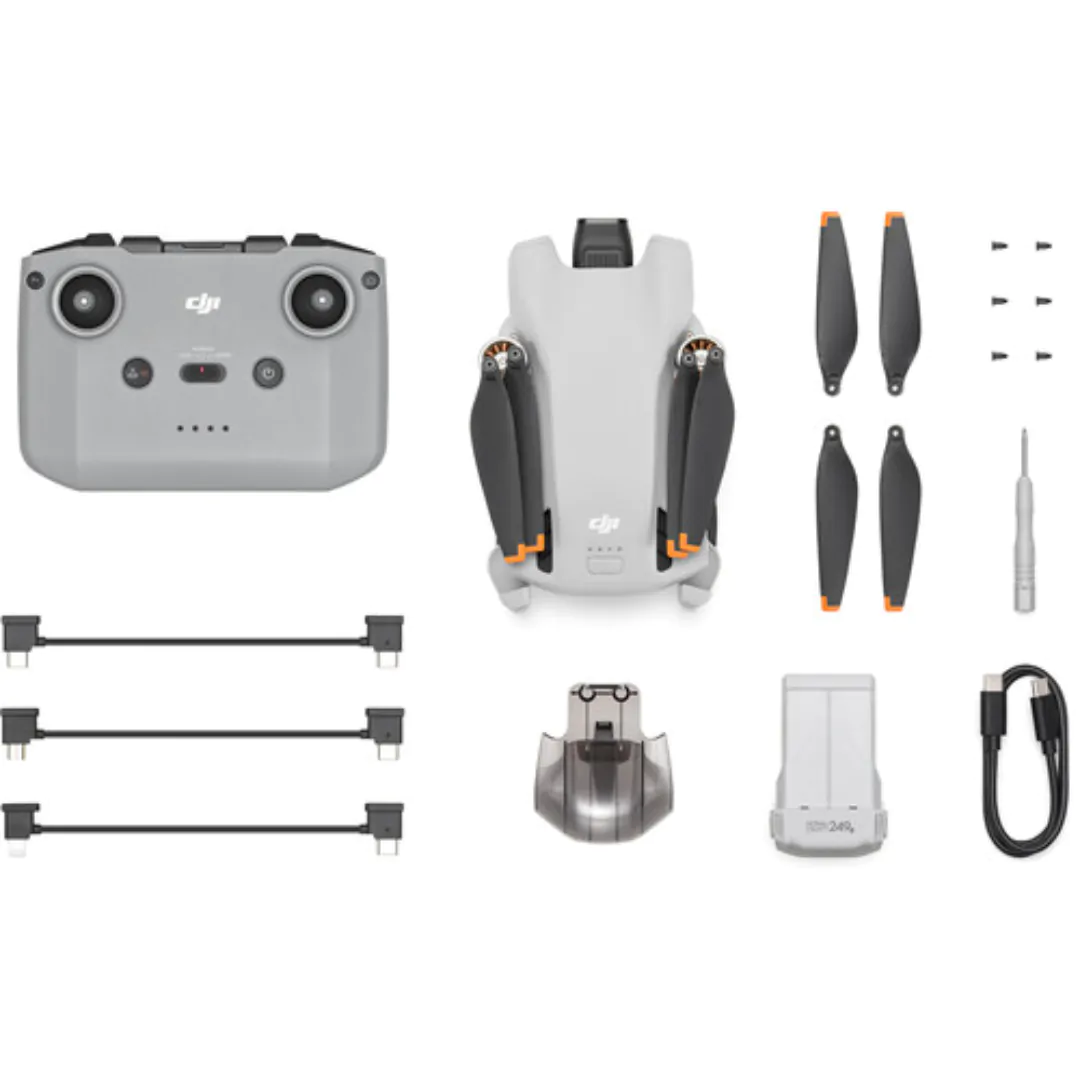 01 – Drone DJI Mini 3 01 – Controle Remoto DJI RC-N1 01 – Cabo USB-C RC-N1 01 – Cabo Lightning RC-N1 01 – Cabo Micro-USB RC-N1 01 – Bateria 01 – Hélices 06 – Parafuso 01 – Chave de fenda 01 – Protetor de Gimbal 01 – Cabo USB-C PD |